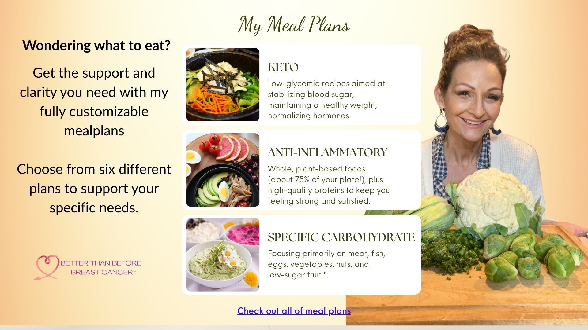 My Better Than Before Breast Cancer™ Membership is an excellent way to get personal coaching, a group experience, and full access to my library of content and courses covering every aspect of physical, mental, and emotional wellness along with the tools to support your success.